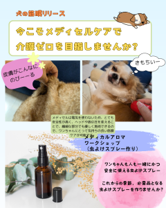 メディカルアロマも導入し、 これからの季節に人もペットも一緒に使える虫除けスプレーのおつ くり体験も出来ます!