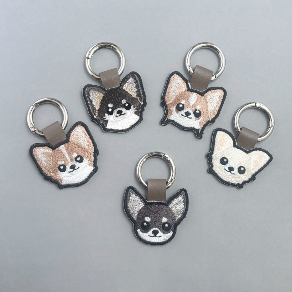 当日は、チワワの刺繍チャームやワッペンのほか、 『チワワ+お名前』のうちの子刺繍オーダーも受付予定です。